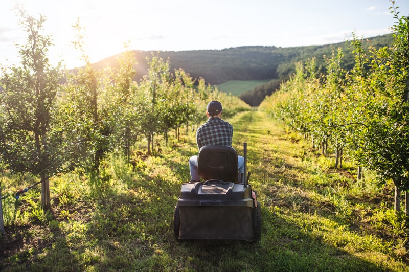 Dès décembre, nous préparons les sécateurs pendant que notre chef de culture planifie la taille en fonction des variétés et de l’âge des arbres. Ce travail débute mi-décembre et se termine en avril. Par temps sec, nous mettons la taille en pause pour planter de nouvelles parcelles. Malgré le froid, la pluie ou le vent, nous avançons sans retard, car le printemps arrive vite. En fin d’hiver, nous appliquons une bouillie bordelaise pour protéger les arbres avant la nouvelle saison.