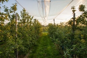 Sur les jeunes plantations, nous installons des poteaux et des fils de fer pour guider la croissance des pommiers et les protéger du vent. Dès la 3ᵉ année, nous attachons les branches pour leur donner leur forme définitive. À partir de la 5ᵉ année, l’arbre porte ses premiers fruits, et nous sécurisons ses branches pour éviter qu’elles ne se brisent sous le poids des pommes.
