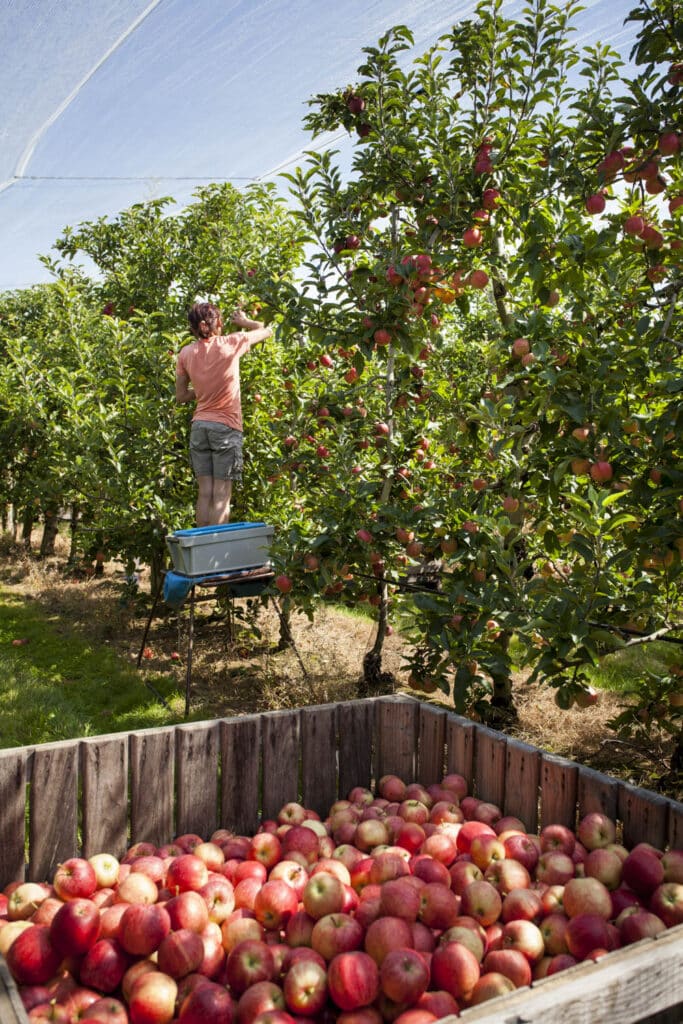 À partir de mi-août, nous analysons l’amidon, l’acidité et la fermeté des pommes pour déterminer le moment idéal de la cueillette.